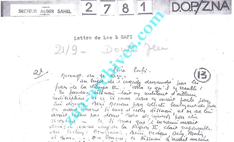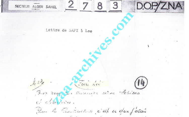 Lettre 01 du 28 Aout (Lee à Zerrouk)